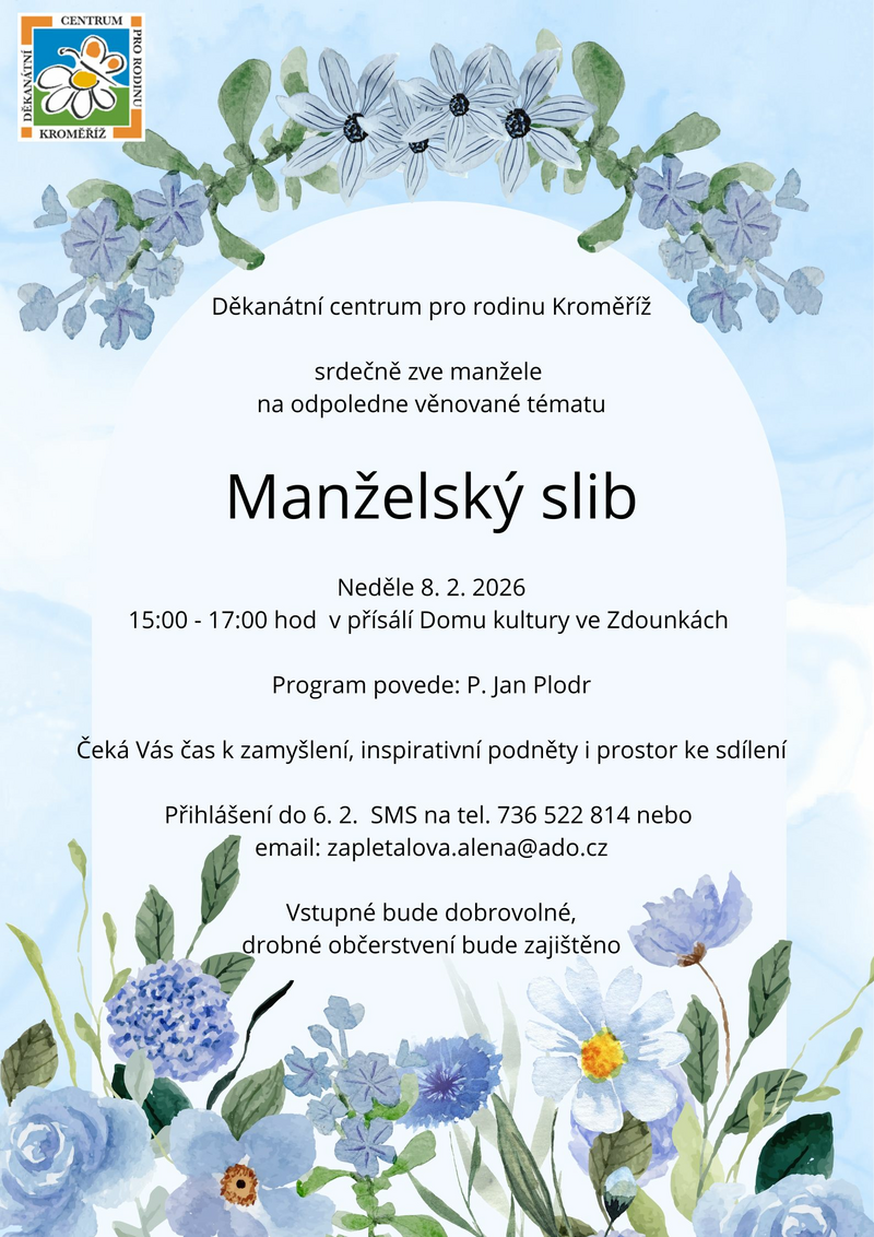Pozvání pro manžele na společné odpoledne věnované tématu: Manželský slib - čas k zamyšlení, inspirativní podněty i prostor pro sdílení