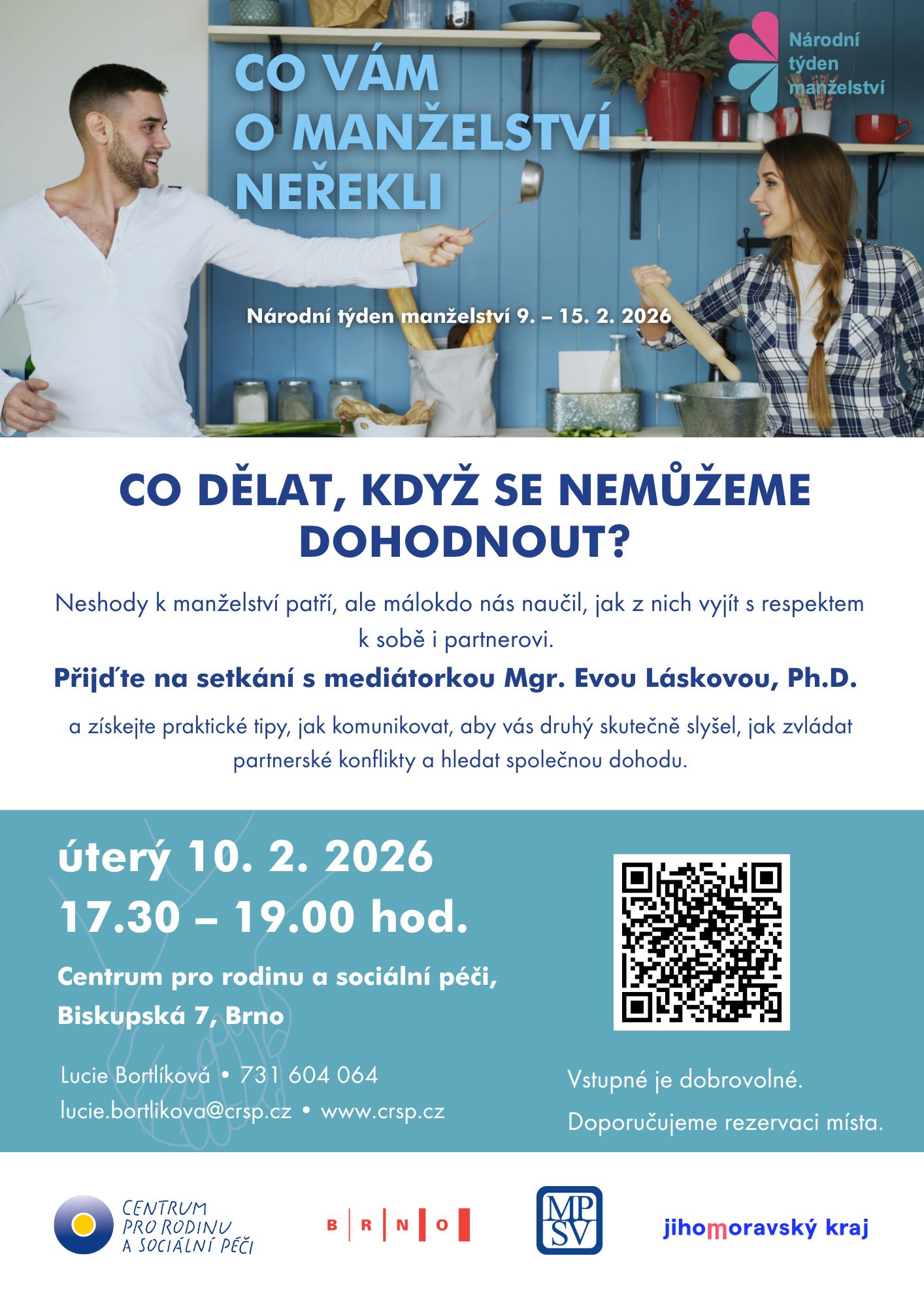 Přijďte se nad tím zamyslet společně s mediátorkou Mgr. Evou Láskovou, Ph.D. a získejte praktické tipy pro zvládání partnerských konfliktů.