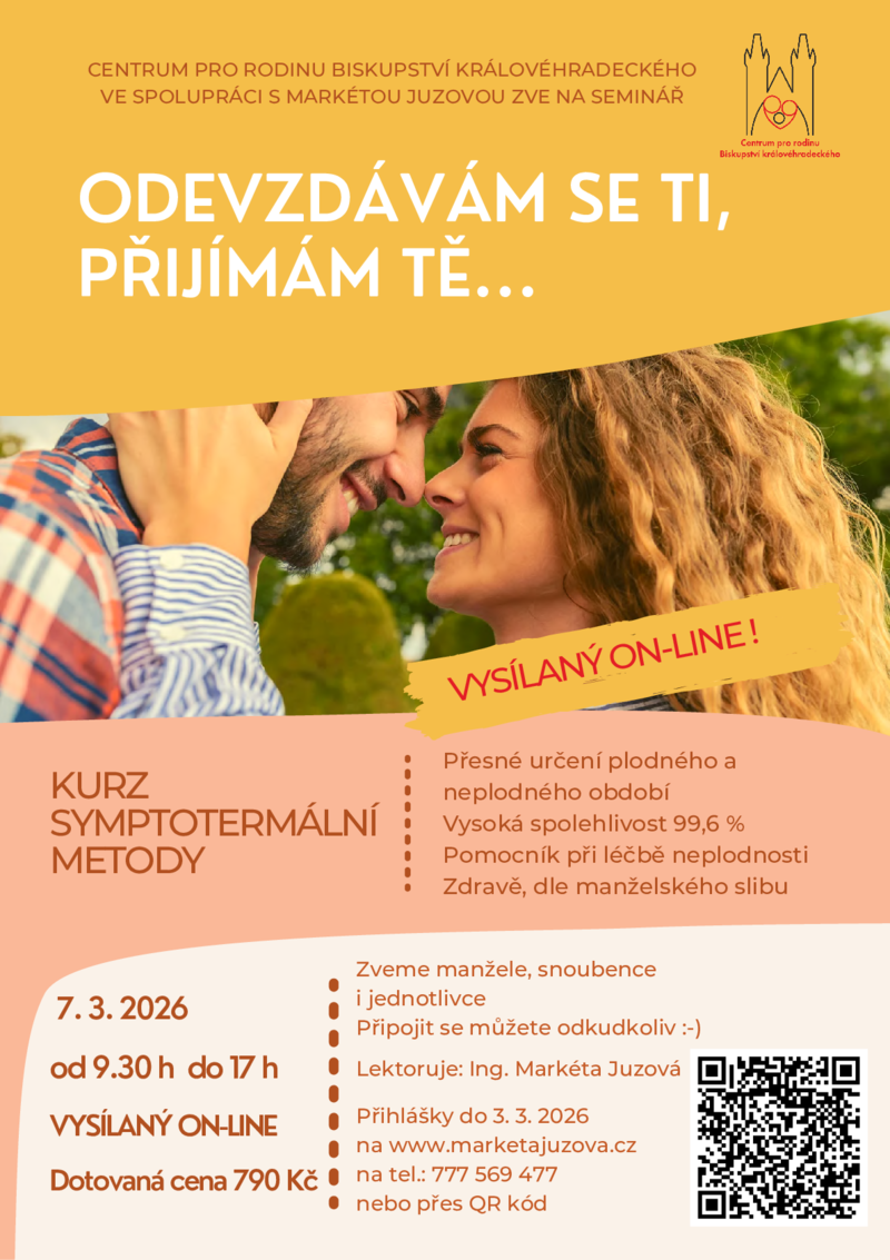 Kurz na porozumění společné plodnosti, rozvoj vzájemné lásky, úcty a respektu nejen v rovině tělesné. Cesta k plnému prožívání manželského slibu Odevzdávám se Ti, přijímám Tě....